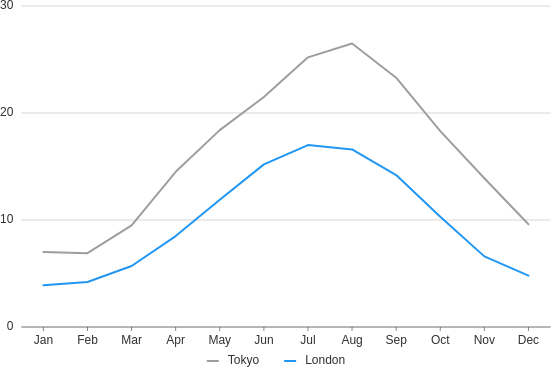 plot=ui.plot([ui.mark(type='line', x='=month', y='=temperature', color='=city', y_min=0)])